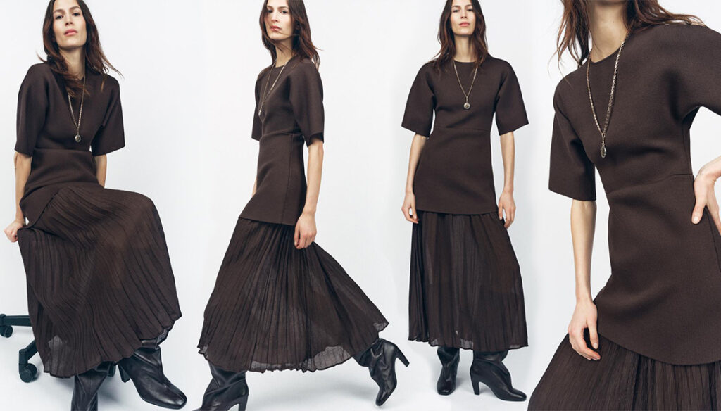 Αυτό το καφέ πλισέ φόρεμα με συνδυασμό υφασμάτων από τη Zara είναι ο απόλυτο φόρεμα για κομψές εμφανίσεις. Ο μίνιμαλ κορμός του σε αντίθεση με τη αέρινη, πλισέ φούστα δημιουργεί ένα ιδιαίτερα κομψό αποτέλεσμα, ενώ το χρώμα του το καθιστά διαχρονικό και ευκολοσυνδύαστο.